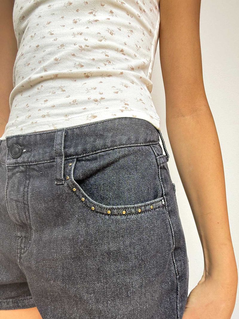 Short Color Jean Cigarette Tiro Medio Desflecada