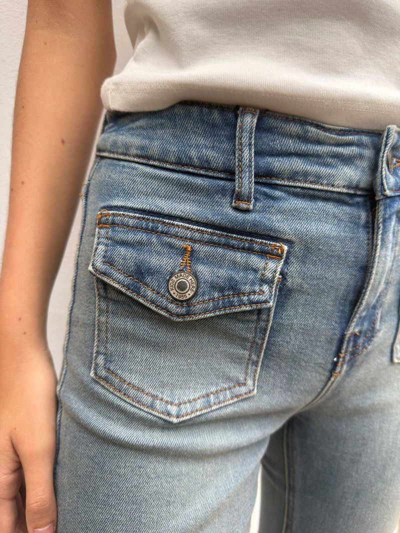 Jean Flare Tiro Medio Bolsillo Tapas